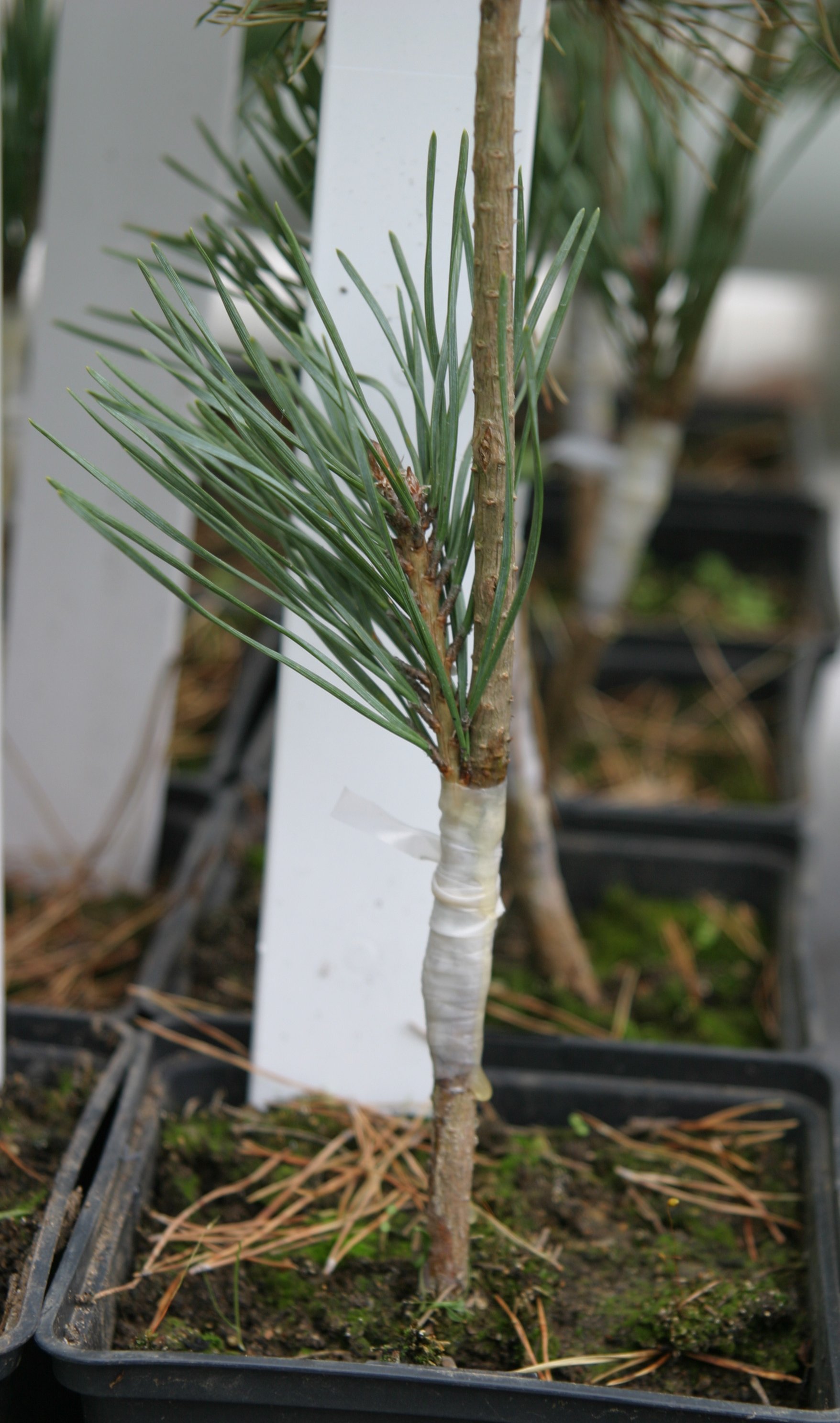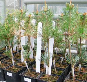 Die Pfropfarbeiten für die Erhaltung von 112 Plattenkiefern, konnten im Winter 2008/09 erfolgreich abgeschlossen werden. Nach Auswahl einer geeigneten Fläche für die Begründung der Waldkiefern-Erhaltungssamenplantagen im Laufe des Jahres 2009 wurde die Anlage im Frühjahr 2010 begonnen. Im Endzustand werden in der Erhaltungssamenplantage 112 Klone in bis zu fünffacher Wiederholung auf einer Gesamtfläche von 2,0 ha vertreten sein.