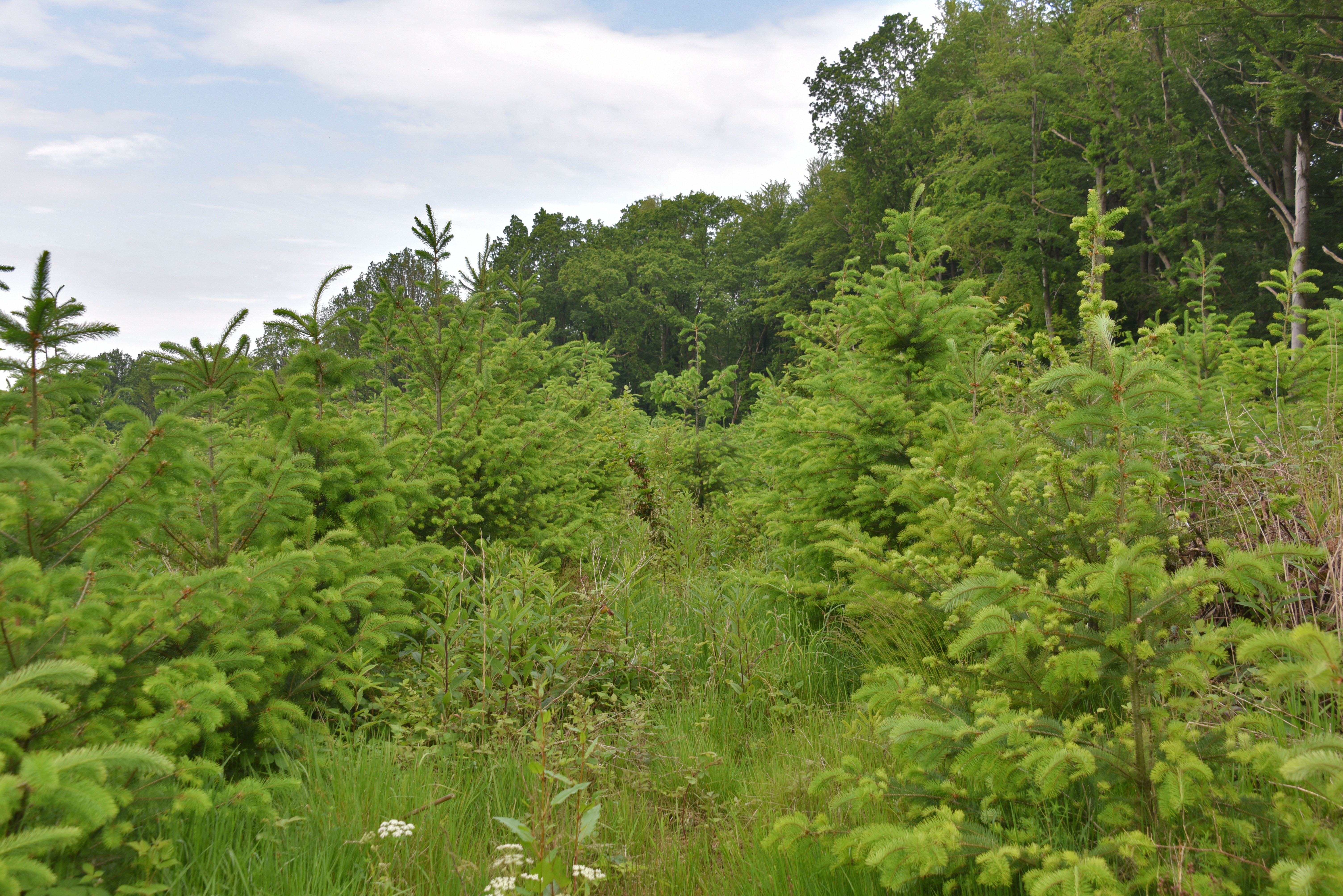 Eine weitere Saatgutquelle sind Samenplantagen. Sie sind gewissermaßen forstliche Sonderkulturen, die ausschließlich der Produktion von forstlichem Saatgut dienen. Mit Hilfe der „Plusbaumauswahl“ werden Ausgangsbäume ausgewählt. Das sind besonders vitale, angepasste, wüchsige, gutgeformte Bäume aus verschiedenen Vorkommen. Diese „Plusbäume“ werden, wie im Obstbau, über Pfropfreiser vegetativ vermehrt, sodass zu jedem Plusbaum mehrere genetisch identische Kopien als Pfropflinge erzeugt werden. Anschließend werden sie in Samenplantagen gepflanzt, um hochwertiges forstliches Saatgut zu produzieren. Im Vergleich mit Saatguterntebeständen lassen sich die Erntemengen deutlich steigern. Die Samenplantagen im Bereich der NW-FVA setzen sich ausnahmslos aus reinen Küstenprovenienzen der Douglasie zusammensetzen, wie genetische Untersuchungen bestätigt haben.
