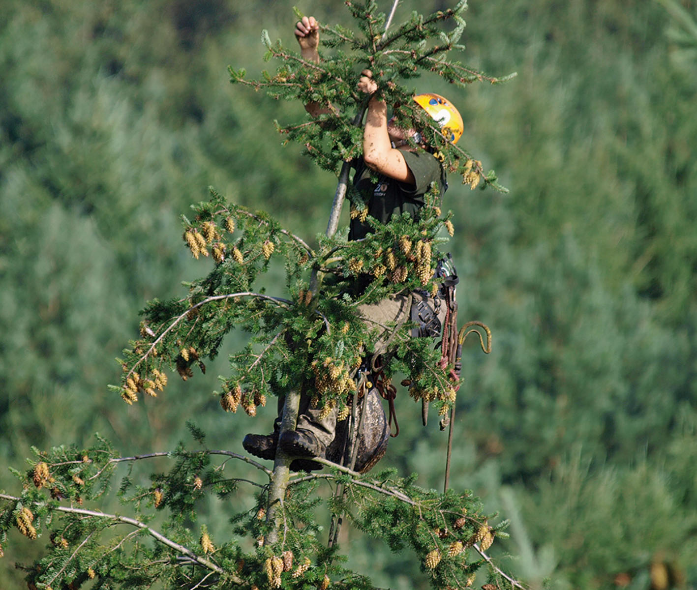 Allerdings führen die Einhaltung dieser Vorgaben und auch veränderte Waldbaustrategien mit mehr Struktur- und Artenvielfalt dazu, dass weniger geeignete, d.h. homogen aufgebaute, leicht zu beerntende Saatguterntebestände vorhanden sind. Zudem werden durch die Zielstärkenutzung kontinuierlich und gezielt die genetischen Leistungsträger aus den Beständen entfernt. Das führt zu einem problematischen Trend: Dem steigenden Bedarf an qualitativ hochwertigem Douglasien-Saatgut stehen weniger verfügbare geeignete Saatguterntebestände gegenüber.