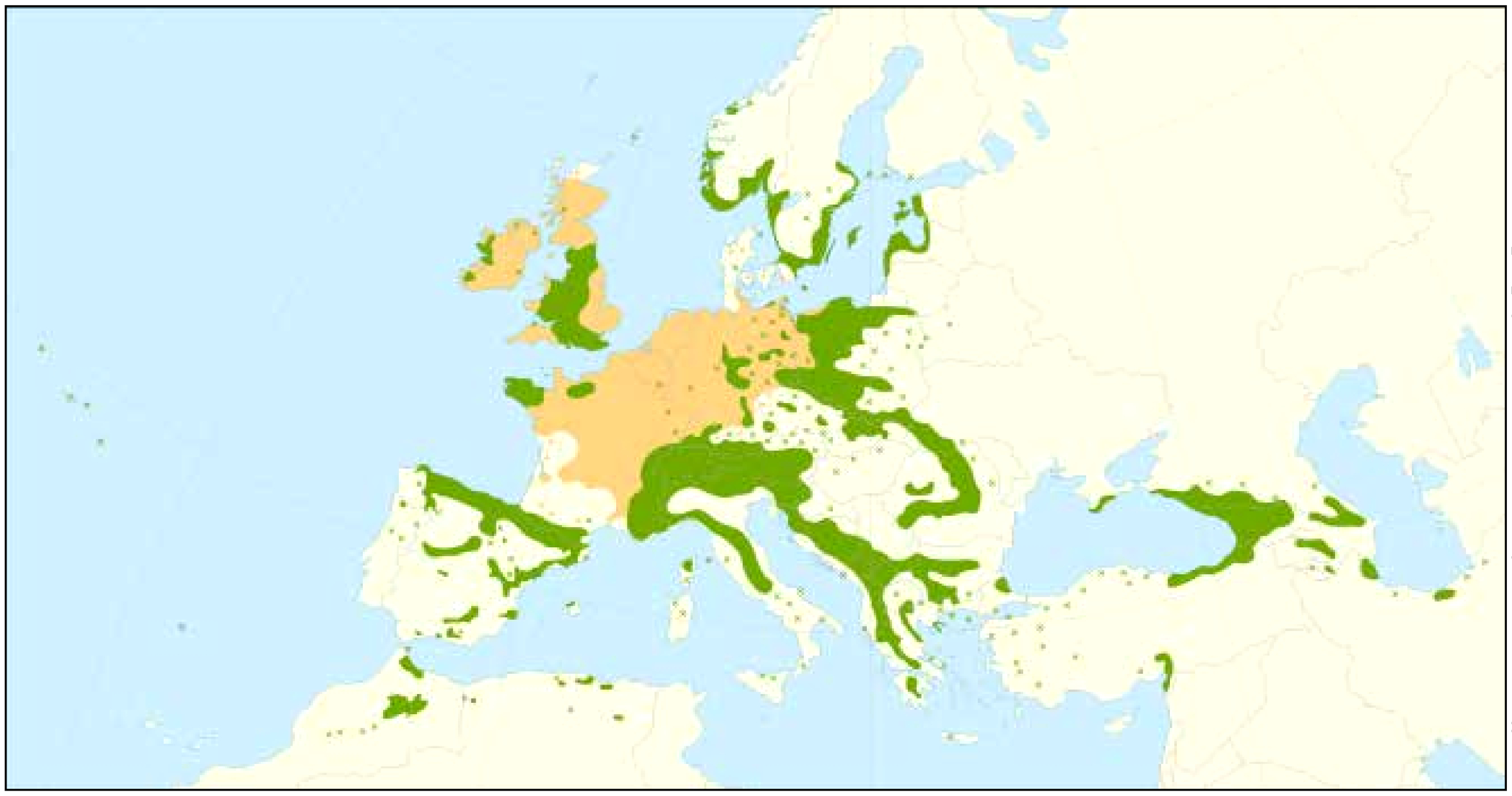 Weitere Vorkommen liegen auf den Britischen Inseln, Korsika, Sardinien, Sizilien und Gotland (Abb. 2). Die Eibe hat eine sehr breite ökologische Amplitude, bevorzugt ein ozeanisch geprägtes Klima und verträgt keine tiefen Wintertemperaturen (Januar–Isotherme -5 °C). Im Klimawandel wird die Eibe als gut geeignete Baumart für trockene bis sehr trockene Standorte eingestuft.