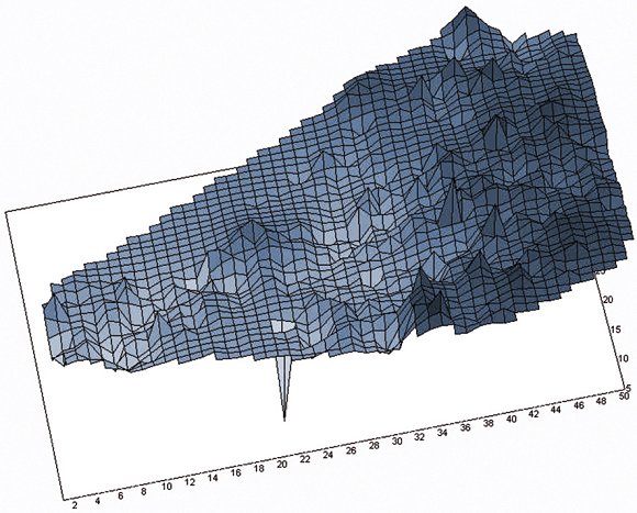 In dieser Analyse scheint die Topologie Österreichs umgekehrt: Die gebirgigen Regionen haben niedrige genetische Distanzwerte, während die flacheren Bereiche im Osten hohe genetische Distanzen aufweisen.