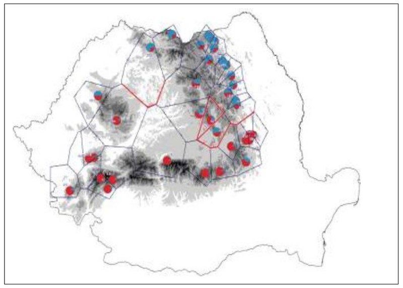 - den zweiten Cluster, der den größten Teil der Populationen der Nord- und äußeren Ostkarpaten abdeckt.