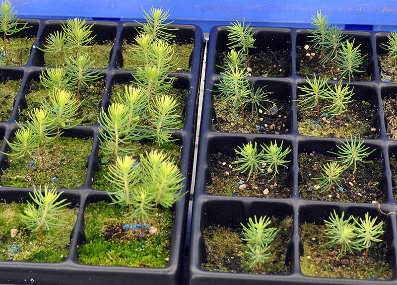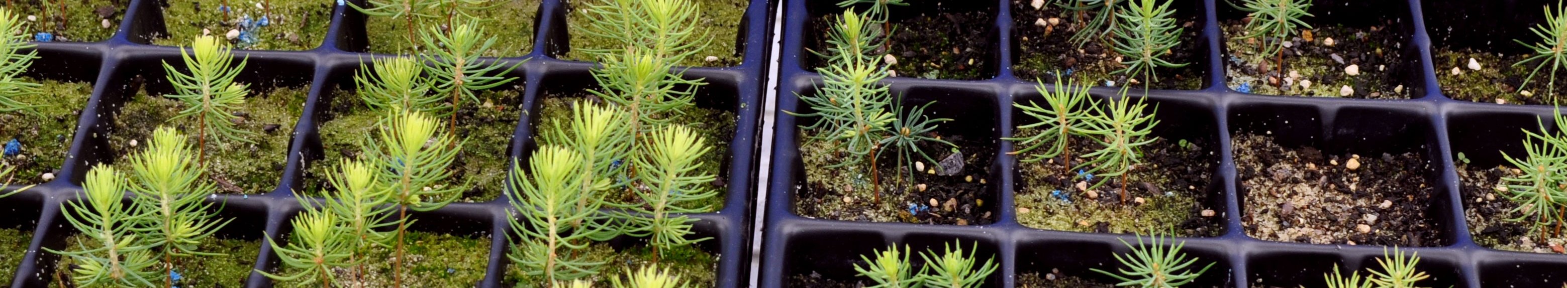 Abb. 1: Einjährige Sämlinge mit unterschiedlicher Augusttriebbildung: Herkünfte aus den Tieflagen (links) und Hochlagen (rechts) (Foto: AWG).