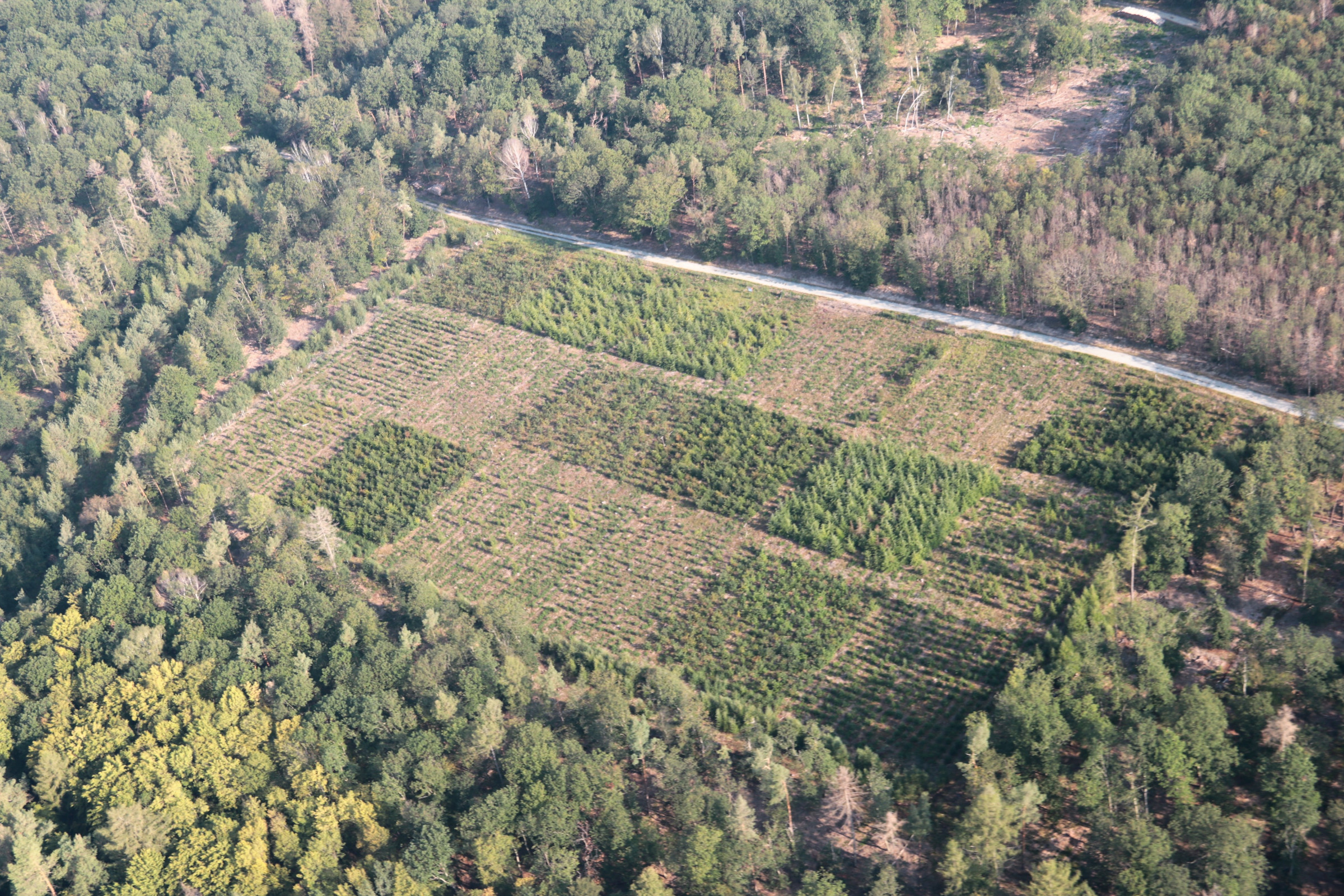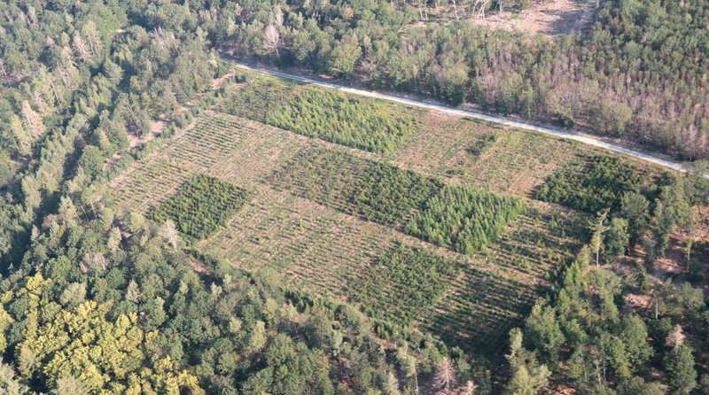 Die fünf Anbauten in Deutschland (Bayern, Thüringen), Schweiz und Österreich erfolgten ab Herbst 2012 auf eingezäunten Freiflächen nach Kahlhieb stets in artreinen 34 m x 34 m Parzellen mit 17 x 17 Pflanzen im 2 m x 2 m Pflanzverband, mit 3 Wiederholungsparzellen je Baumart und je Versuchsort sowie inklusive einer jeweils standortangepassten heimischen Vergleichsbaumart. Im länderübergreifenden Gesamtversuch werden seitdem Daten zu ca. 26 Tsd. Pflanzen auf 90 Parzellen erhoben und verarbeitet.