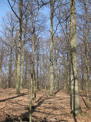 Abb. 1. Hochwertiger Saatguterntebestand der Stieleiche. Ausgewählte Mutterbäume werden permanent markiert.