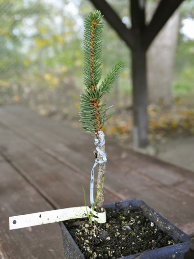 Abbildung 4b: Angewachsene Veredelung einer PlusFichte, 6-7 Monate nach der Beerntung. Foto: BFW / Thalmayr