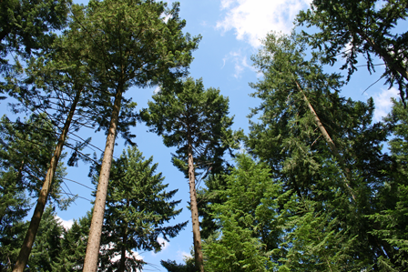 Der Douglasienaltbestand in Großreifling/Landl (ÖBF-AG) wurde vor 137 Jahren von A. Cieslar als eine der ersten Versuchsflächen in Österreich angelegt. Mit einen Vorrat von ca. 2500 Vfm/ha und einer Baumhöhen vom bis 64 Metern zählen die Baumgiganten zu den höchsten Bäumen Österreichs. (Bild: Ruhm/BFW)