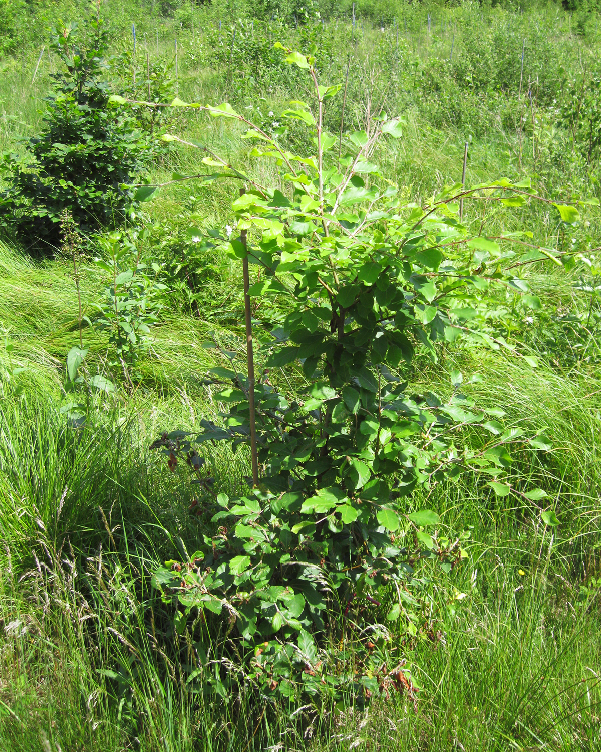 Während die Überlebensrate der Orientbuche auf den Versuchsstandorten Oldisleben und Großostheim bei über 80 % lag, waren die Ausfällen am Standort Schmellenhof deutlich größer. Wir führen das auf den wechselfeuchten Standort mit seinem zeitweiligen Wasserüberschuss zurück, mit dem die Orientbuche erhebliche Schwierigkeiten hat. Zwar blieben die Ausfälle ab dem 3. Jahr nahezu unverändert, allerdings waren zu diesem Zeitpunkt bereits über 70 % der jungen Buchen in Schmellenhof ausgefallen.