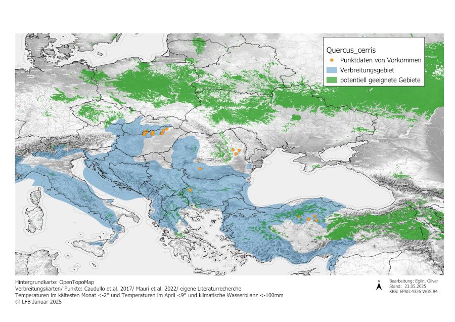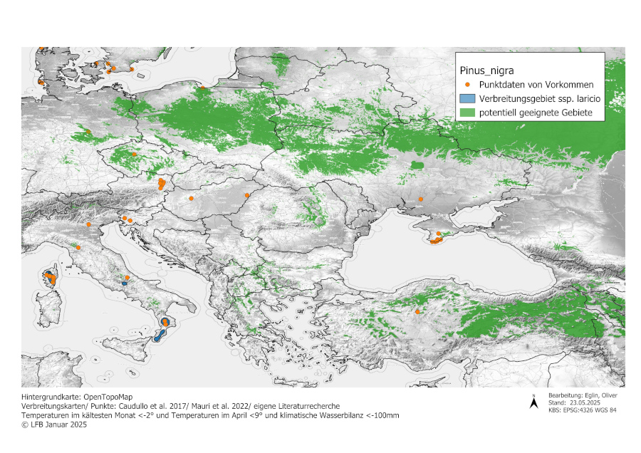 Im zweiten Schritt sollen die gewonnenen Daten dann in einer Verbreitungskarte präsentiert werden. Die exakten Koordinaten der Bestände werden im Geoportal nur mit ausdrücklicher Genehmigung der Eigentümer angegeben! Darüber hinaus sollen langfristig auch bereits im LFE vorhandene Datensätze aus beispielsweise Versuchsflächen, Projekten und Biotopkartierungen eingepflegt werden.