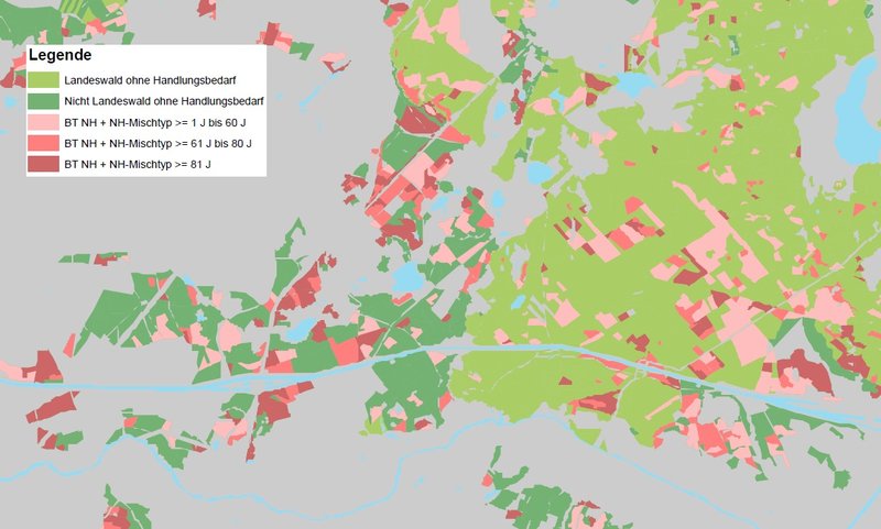 Das Landeskompetenzzentrum Forst Eberswalde (LFE) wurde 2019 vom Ministerium für Landwirtschaft, Umwelt und Klimaschutz Brandenburgs beauftragt, den aktuellen Waldumbaubedarf zu ermitteln und Waldumbauschwerpunkte zu lokalisieren.