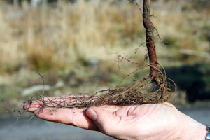 Abb. 5: Wurzeln sollen nach unten wachsen. Bei der Pflanzung verdrehte und deformierte Wurzeln korrigieren ihr Wachstum nur noch sehr eingeschränkt. Foto: J. Preller