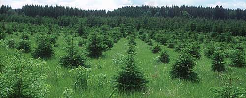 - Bei der Aufforstung können durch weitere Pflanzverbände und geringere Pflanzenzahlen bedeutende Kosten eingespart werden. Je nach den örtlichen Gegebenheiten und betrieblichen Notwendigkeiten sind bei Fichte Pflanzenzahlen zwischen 1200 und 2500 pro Hektar ausreichend.