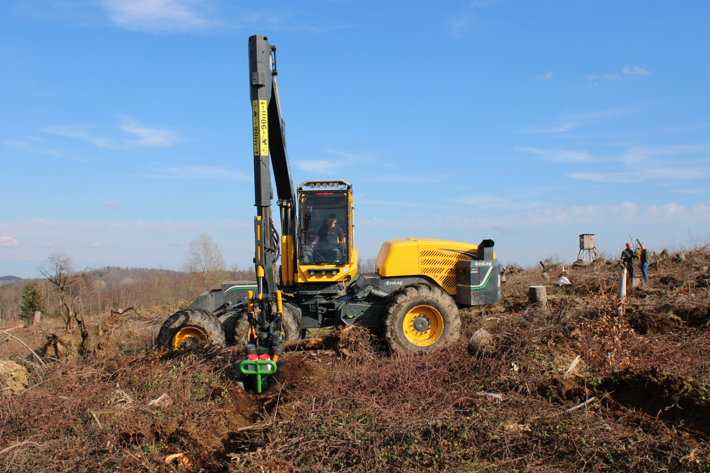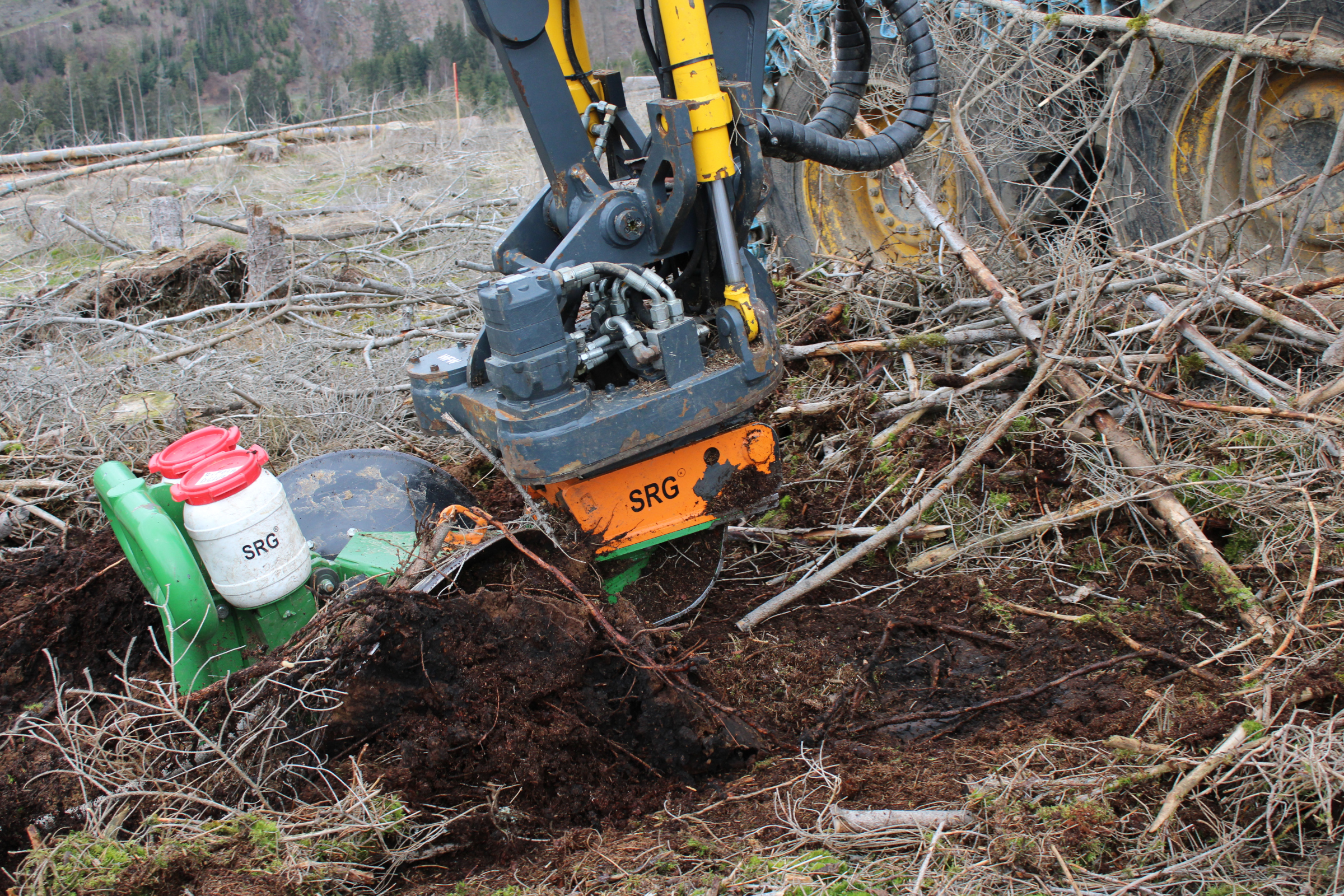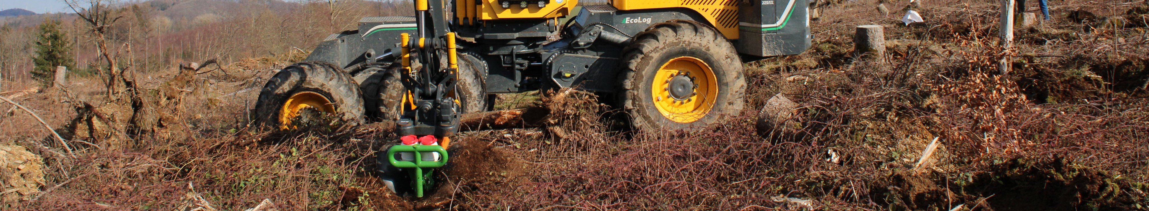 Mit Beginn der Borkenkäferkalamität im Frankenwald im Norden Bayerns sind in kurzer Zeit großflächig Kahlflächen entstanden, die es aus verschiedenen Gründen rasch wiederzubewalden gilt. Neben der naturräumlichen Ungunst (raues Frankenwaldklima i.V.m. steilen und exponierten Lagen, meist nährstoffarmen, flachgründigen Böden mit artenarmer Altbestockung) erschwert insbesondere die rasch einsetzende Vergrasung die Wiederbewaldungsbemühungen erheblich. Vor diesem Hintergrund hat die Bayerische Landesanstalt für Wald und Forstwirtschaft zusammen mit den Ämtern für Ernährung, Landwirtschaft und Forsten Coburg-Kulmbach sowie Bayreuth-Münchberg einen neuartigen, hochmechanisierten Ansatz zur Begründung von Mischbeständen mit Hilfe marktüblicher Holzerntetechnik und neuentwickelter Bodenbearbeitungs- und Saattechnik großflächig im Gelände erprobt.
