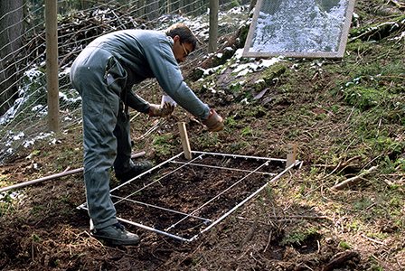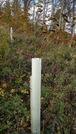 Abb. 7. Direktaussaat von Nussbaum mit Schutz. Foto: J. Boss