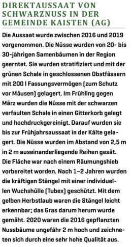 Abb. 5. Direktaussaat von Schwarznuss in der GemeindeKaisten (AG).