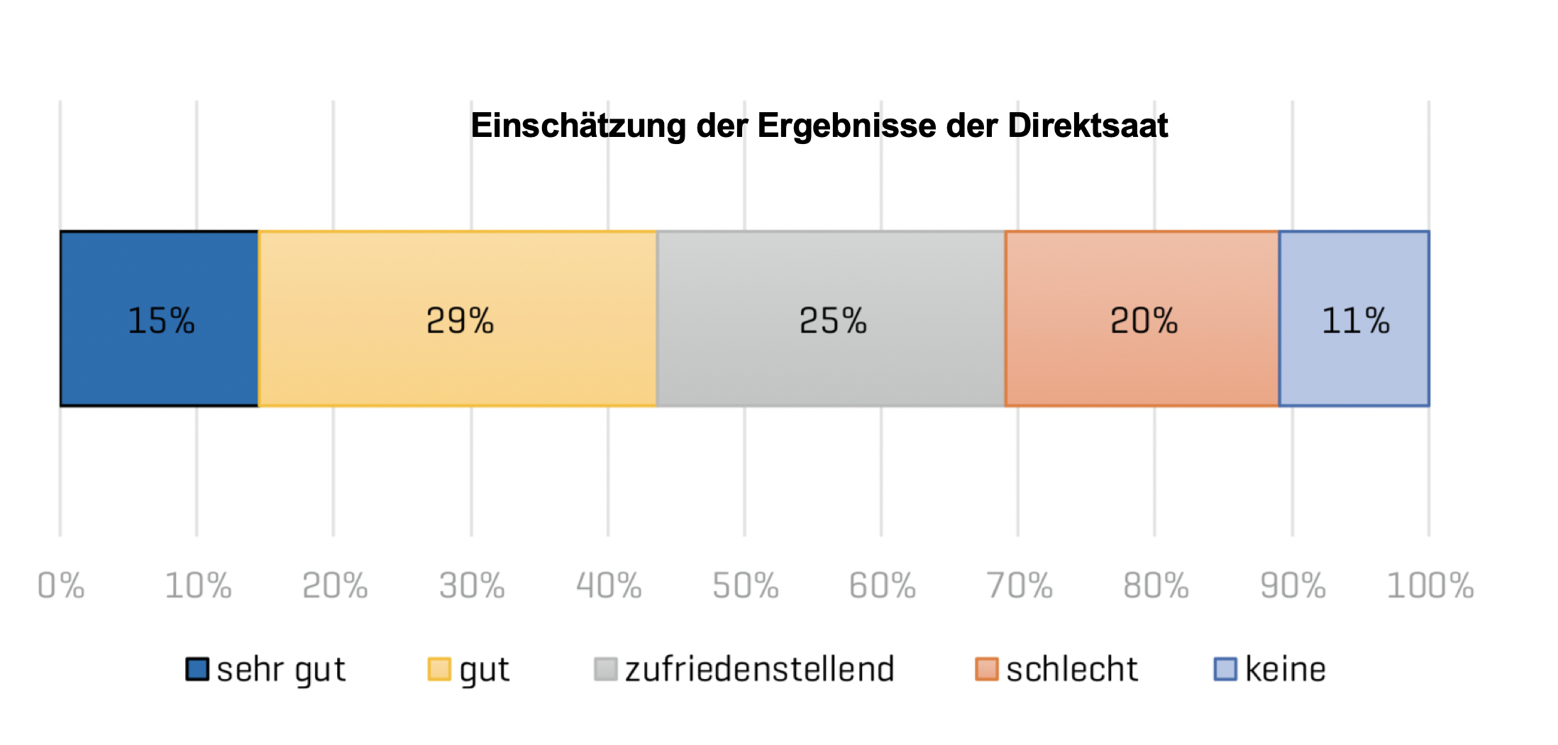 Eine im Jahr 2020 vom Bundesamt für Umwelt (BAFU) bei den Forstdiensten durchgeführte Erhebung zeigt indessen, dass in den letzten Jahren schweizweit mehrere Dutzend Versuche durchgeführt wurden und das Interesse an dieser Technik in jüngerer Vergangenheit gestiegen ist. 23% der Antwortenden (233 eingegangene Antworten) haben die Direktsaat schon mit einer oder mehreren Baumarten getestet.