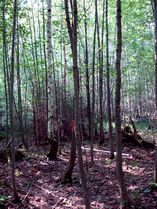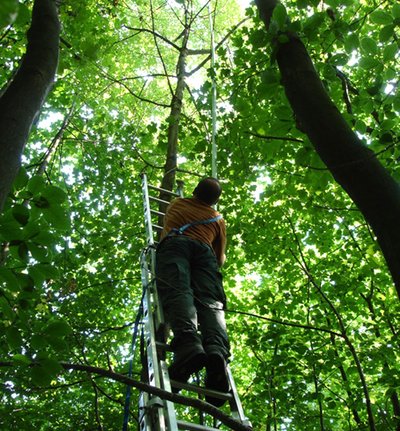 Waldbauliche Maßnahmen in der Jugendphase sollten in Form extensiver Eingriffe zur Mischungsregulierung und der qualitativen Verbesserung des Bestandes die Regel sein. Werden die Pflegeeingriffe versäumt, kommt es häufig zu einem erheblichen Druck durch Weichlaubbäume oder konkurrenzstarke Arten wie Buchen oder Fichten auf die Edellaubbäume (Abb. 3). Bei der weiteren Behandlung der Versuchsbestände sollte aufgrund der frühen Kulmination des Höhenzuwachses und der rasch nachlassenden Fähigkeit zum Kronenausbau von Esche und Bergahorn in der nahen Zukunft mit einer positiven Auslese geeigneter Bäume begonnen werden. Dies muss auf den leistungsstärkeren Standorten früher, auf den schwächeren später erfolgen. Die Eschen- und Bergahornbestände sollen für die Entwicklung einer echten Zeitreihe nach etwa zehn Jahren erneut untersucht werden.