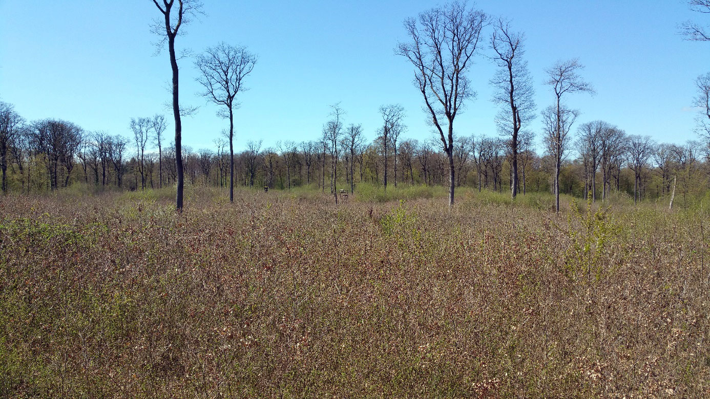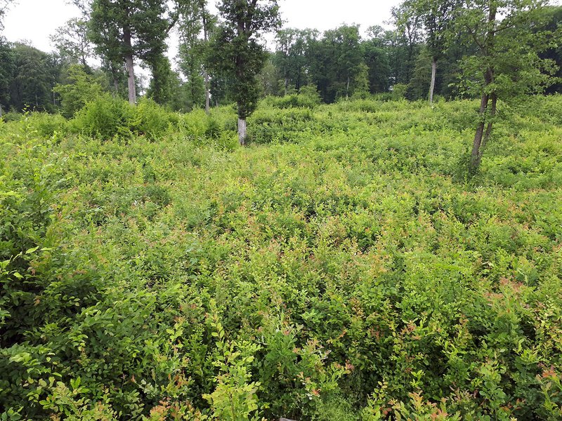 Abb. 2: Von Eichen geprägte Verjüngungsfläche (Alter 7-9 J) mit einzelnen, zusätzliche Struktur gebenden Inseln aus Hainbuche.
