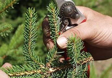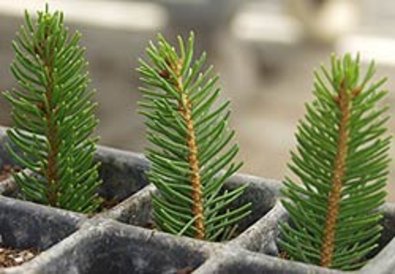 Bei der Substratwahl sind verschiedene Varianten möglich. Wir verwenden im betriebseigenen Versuchsgarten Mariabrunn ein Gemisch aus Perlit und Styropor. Auch andere Substratmischungen (verschiedene Torfsubstrate) und natürlicher Kiessand (4 bis 8 mm) werden verwendet und führen zum gewünschten Anwuchserfolg. Abschließend werden die Container im Gewächshaus oder im Folientunnel abgestellt. Eine Sprühnebelanlage garantiert die notwendige hohe Luftfeuchtigkeit und eine nasse Nadeloberfläche, die es dem Steckling ermöglicht zu assimilieren, ohne dass es durch die Transpiration zu Wassermangel und Vertrocknungserscheinungen kommt.