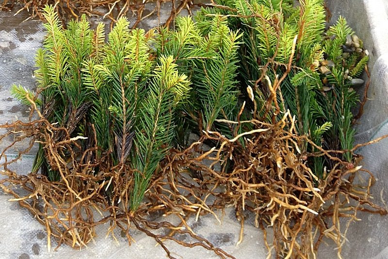 Sobald die Stecklinge ausreichend angewurzelt sind (Juli bis August), werden die Stecklinge ausgehoben und im Freiland verschult oder bei Verwendung als Topfpflanzen in größere Töpfe umgetopft. Topqualität des Ausgangsmaterials und ideale Anzuchtbedingungen im Pflanzgarten ermöglichen bei der Fichte eine Anwuchsquote von 70 bis 90 Prozent.