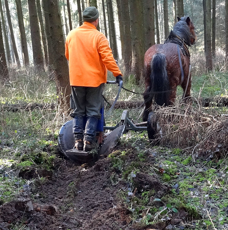 Kleinflächige Saaten können mit Pflanzhauen/Rechen, Freischneider, Einachsfräse, Kleinbagger oder Einsaathilfen ausgebracht werden. Für großflächige Saaten eignen sich der Einsatz von Pferd oder Kleinschlepper.