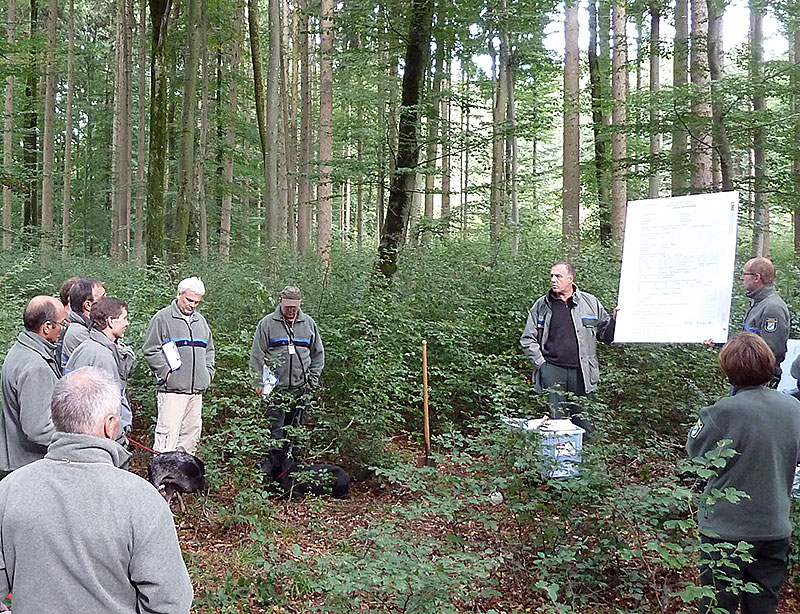 Douglasie: Bestände unbekannter Herkunft dürfen nicht natürlich verjüngt werden. Das gilt besonders auch für die Graue Inlanddouglasie (Pseudotsuga menziesii var. glauca), da sie gegenüber der Rostigen Douglasienschütte (Rhabdocline pseudotsugae) sehr empfindlich ist. Auch bei der Grünen Küstendouglasie (Pseudotsuga menziesii var. viridis) spielt die Genetik eine wichtige Rolle. Altbestände aus ungeeigneten Herkuftsgebieten sollten nicht natürlich verjüngt werden. Damit sich keine Douglasien-Reinbestände entwickeln, müssen Mischbaumarten in trupp- bzw. gruppenweiser Mischung ausreichend beteiligt werden. Längere Überschirmungszeiträume begünstigen einen differenzierten Aufbau der Verjüngung.