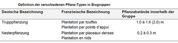 Tab. 3.Definition der verschiedenen Pflanz-Typen in Biogruppen