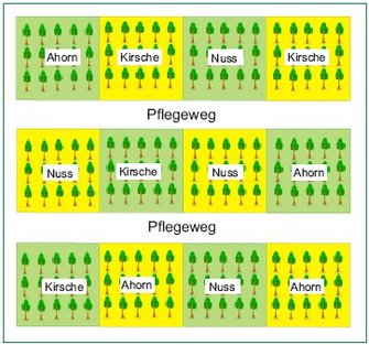 Abbildung 3: Gleichzeitige Begründung eines Edellaubholz-Mischbestandes durch Reinbestandeszellen.
