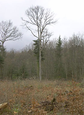 - Der Saumhieb ist bei der Eiche ebenfalls anwendbar. In diesem Fall wird der Nebenbestand mit Ausnahme der die Eichen einpackenden Bäume entfernt.