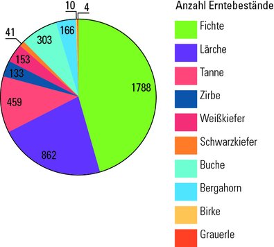 Beerntungen der zehn wichtigsten schutzwaldrelevanten Baumarten (siehe Abb. 2).
