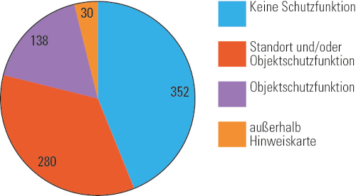 Der Schwerpunkt der Analysen lag auf dem Schutzwald mit direkter Objektschutzfunktion, der derzeit etwa 16 % der österreichischen Waldfläche (rund 616.000 ha) umfasst. Die Verknüpfung der Hinweiskarte Schutzwald mit den Kriterien der Waldinventur „Verjüngungsnotwendigkeit“ und „fehlende Verjüngung“ zeigt , dass auf rund 138.000 ha des Schutzwaldes mit Objektschutzfunktion dringend eine Verjüngung geboten ist, um mittelfristig den Schutz von Objekten sicherzustellen (Abb. 1). Eine überdurchschnittlich hohe Verjüngungsnotwendigkeit und fehlende Verjüngung zeigen sich insbesondere in den inneralpinen Wuchsgebieten und den nördlichen Zwischenalpen auf Seehöhen zwischen 800 und 1.400 m.