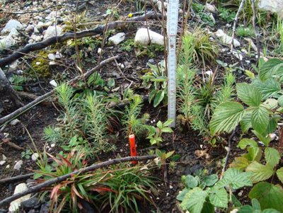 Gründe für den schlechten Anwuchserfolg der Samen liegen vor allem an der südexponierten Freifläche mit einem dunklen Humusboden, der sich durch die starke Sonneneinstrahlung erhitzt (es wurden Oberflächentemperaturen über 70 °C gemessen) und austrocknet. Die Aufnahmen haben gezeigt, dass bei einem etwas günstigeren Substrat (heller Mineralboden) deutlich mehr Keimlinge auf den Saatplätzen gefunden wurden als auf Plätzen mit hohem Humusanteil. Auch eine leichte Überschirmung durch Begleitvegetation hat sich an manchen Saatplätzen als vorteilhaft erwiesen und die Keimlingszahl erhöht.