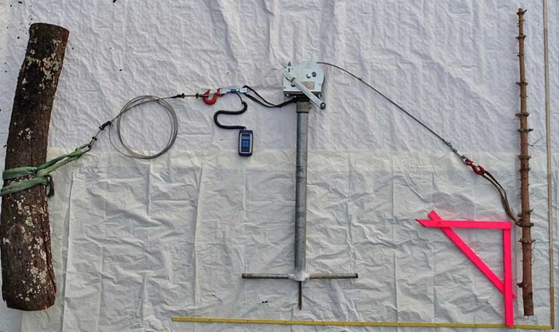 Abb. 3: Versuchsanordnung zur Messung der Standfestigkeit der jungen Bäume.