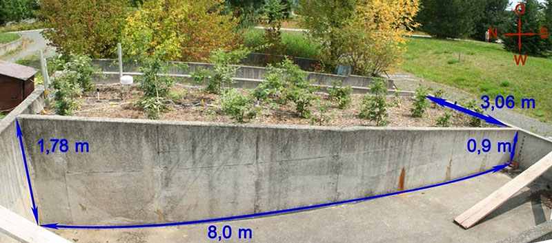 In den Becken können kontrolliert unterschiedlich hohe Grundwasserstände eingestellt werden. Das Wasser kann aber nicht abfließen sondern steht im Becken. Das eigefüllte Substrat steigt von der einen zur anderen Beckenseite hin hangförmig an. Damit steht bei maximaler Flutung der Becken der Wasserspiegel an der unteren Seite über dem Boden (Überflutung), nach oben hin sinkt der Grundwasserspiegel kontinuierlich auf 70 Zentimeter ab. Die Flutungsdauer betrug im Experiment zehn Tage.