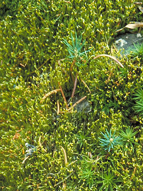 Abb. 8 - Kaum zu finden: Fichtensämlinge im Haarmützenmoos. Foto: Peter Brang (WSL)