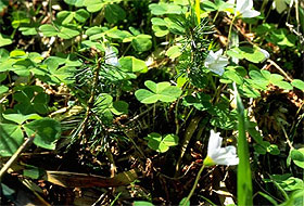 Abb. 5 - Zwei Fichtensämlinge durchwachsen einen Sauerklee-Teppich. Foto: Peter Brang (WSL)