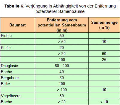 Tab. 6: Verjüngung Entfernung Samenbäume.
