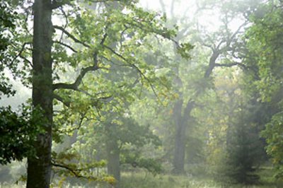 Abb. 1: Ehemaliger Eichenmittelwald im Morgennebel. (Foto: FVA/Gössl)