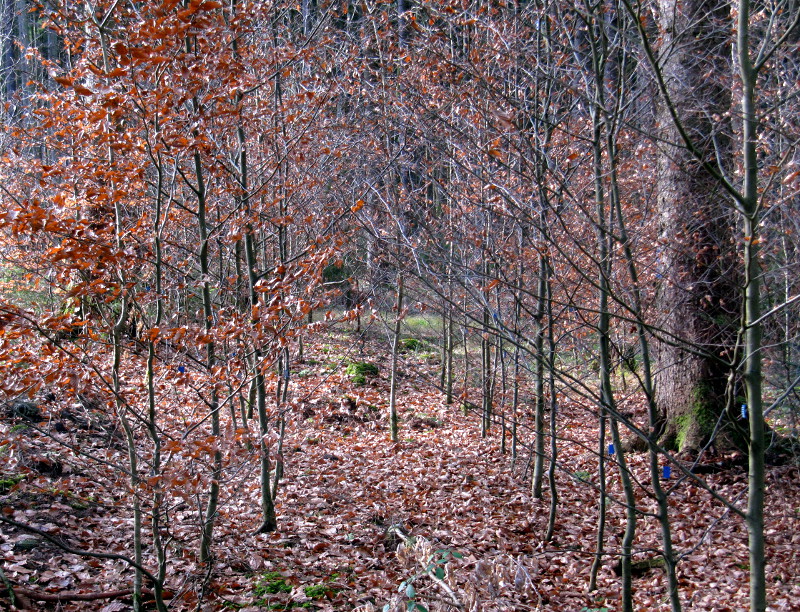 Baumschulpflanzen oder Wildlinge? Um diese Frage zu beantworten hat die Bayerische Landesanstalt für Wald und Forstwirtschaft (LWF) im Jahr 2002 zwei jeweils etwa 600 Quadratmeter große, direkt benachbarte waldbauliche Beobachtungsflächen angelegt. Auf zwölf Parzellen wurden insgesamt 780 Buchen mit der Rhodener Pflanzhaue im Verband 2 m x 0,8 m ausgebracht.