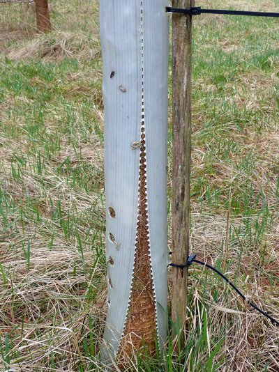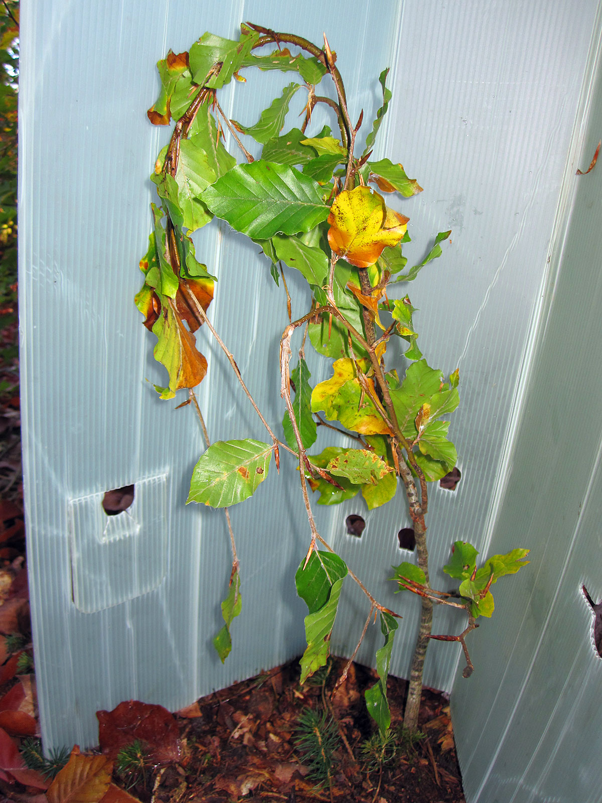 - schrägstehende oder umgefallene Wuchshüllen (bei mangelhafter Verpflockung oder Kontrolle) können Kulturerfolg gefährden