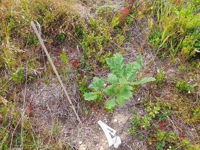 Die überlebenden Pflanzen (88% aller gepflanzten Individuen) zeigten sich 2023 in geringem Ausmass Schäden an verschiedenen Pflanzenteilen: