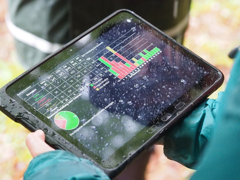 Abb. 4: Tablet mit Auszeige- und Auswertungssoftware beim Projekt Resynat © Foto: Dr. Eckart Senitza