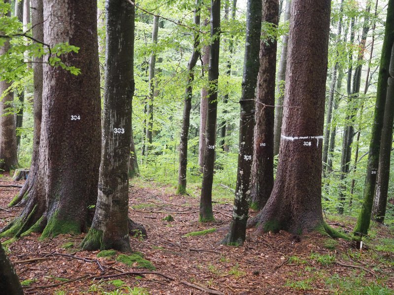 Die Auszeige – das unberechenbarste Werkzeug im Waldbau: Dies ist eine wichtige Erkenntnis, die Waldbesitzer*innen aus diesem Monitoring für ihren eigenen Wald ziehen und darauf aufbauend Strategien für die Bestandesumwandlung und -weiterentwicklung entwerfen können. Dass dieser Katalog an Referenzflächen keine Blaupause darstellen kann, wird jedoch spätestens dann offensichtlich, wenn man sich genauer mit den Stellschrauben beschäftigt, die jeden Wald und dessen Entwicklungsdynamik einzigartig machen: Neben der Bestandesgeschichte ist insbesondere die Auszeigeroutine des zuständigen forstlichen Personals objektiv schwer zu erfassen und auszuwerten.