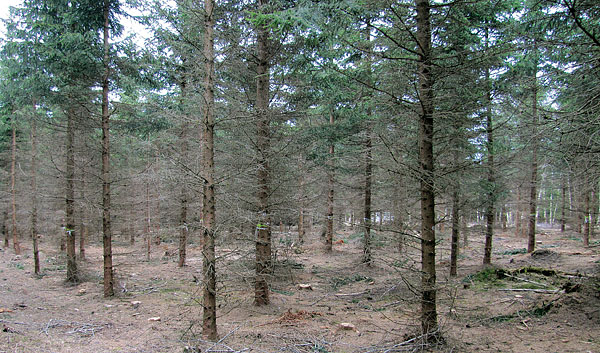 Die ersten Messergebnisse der fünf im Jahre 1992 angelegten Fichten-Einklonversuche mit drei verschiedenen Stammzahlvarianten von 2664, 1282 und 321 Bäumen je ha ließen die Vermutung aufkommen, dass zuwachsreduzierender Konkurrenzeinfluss nicht nur im Kronenraum, sondern bereits vorher im Wurzelbereich stattfindet. Bohrkernanalysen haben gezeigt, dass es bereits einige Jahre vor Eintritt des Kronenschlusses zu unterschiedlichen Jahrringbreitenentwicklungen kam.