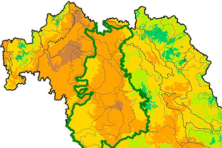 Die statistische Beurteilung des Klima-Risikos auf der Grundlage europaweiter Verbreitungs- und Klimadaten führt auch bei der Tanne in Baden-Württemberg zu insgesamt plausiblen Ergebnissen. Bei der Abbildung lokal begrenzter Vorkommen stößt das Vorgehen jedoch an Grenzen: So wird beispielsweise das natürliche Tannen-Vorkommen im Bereich des Schwäbisch-Fränkischen Waldes nicht erfasst (Abb. 4). Zur Verbesserung der Trennschärfe der Modellierung könnte es unter Umständen hilfreich sein, den derzeit verwendeten, europaweiten Datensatzes zum Vorkommen durch räumlich stärker aufgelöste Informationen, beispielsweise aus Betriebsinventuren, zu ergänzen.