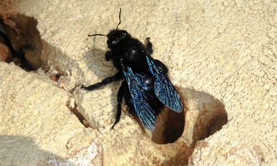 The violet carpenter bee (Xylocopa violacea) is a wood dwelling bee species with a range of distribution from the Mediterranean to Asia. Its occurence in Germany was until now restricted to the warm areas. Since the year 2000 it seems that the species continues to spread. Since the violet carpenter bee is larger than the native german bumble bee species, its presence causes extreme fear by laypeople and leads to, as the following article shows, to completely excessive reactions.