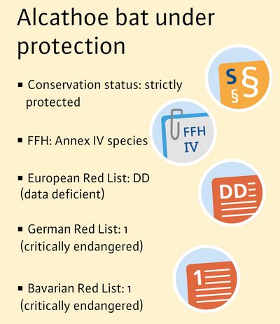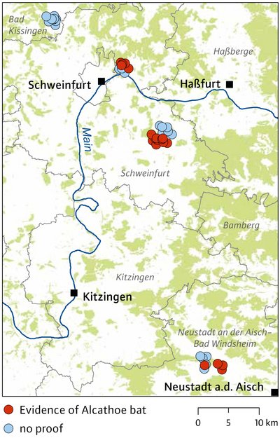 In Germany, the Alcathoe bat is considered to be one of the rarest bat species. It is very reclusive, which is why knowledge about its distribution in Bavaria is still limited. Earlier studies show its main area of distribution to be in old deciduous forests in northern Bavaria. There is a complete lack of evidence of the species south of the Danube - despite intensive searches in forests that are well suited as habitats.