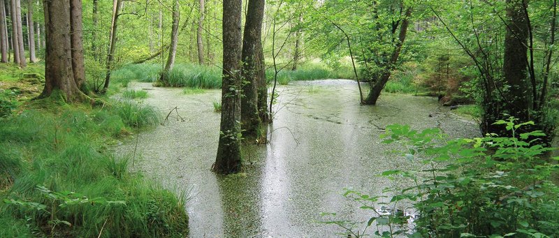 Amphibians require suitable terrestrial habitats in the vicinity of their aquatic sites. A close-to-nature style of forest management is beneficial for amphibian populations. Stands rich in deciduous trees and with plenty of ground vegetation offer an ideal range of food sources and places to hide. The creation of sparse structures allowing light on to the water body and its immediate surroundings is good for the warmth requirements of many amphibians and encourages the growth of the layer of herbaceous plants and shrubs they require.