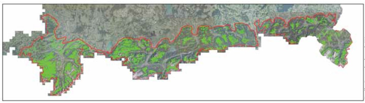 In order to show the potential natural habitat of grouse in the Bavarian alpine region (Growth area 15) over a large area for the first time, we evaluated the forest types of the WINALP forest information system for the northern Alps. For the capercaillie, for example, sites were selected that are potentially home to natural high-altitude spruce forests, fir forests rich in berry shrubs, larch and stone pine forests, or the generally more coniferous-dominated uppermost swathes of mixed mountain forests. Likewise, particularly valuable azonal habitats such as moorland forests, winter heath-pine forests or coniferous scree forests in cold air streams were taken into account. This scenery represents the potential natural habitat of the capercaillie in the Bavarian alpine region, and comprises some 81.000 ha (see Fig. 3 and Table 1). In comparison with approx. 125.000 ha of black grouse habitat, not to mention the 355.000 ha of hazel grouse habitat, the natural habitat of the capercaillie is relatively small.