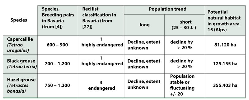 To set conservation objectives in forests, it is thus necessary to have an overview of the habitat requirements of the respective flagship and keystone species characteristic of the areas in question. It can thus never be the objective of forest conservation efforts to create an ideal forest for capercaillie or black grouse across the entire area.
